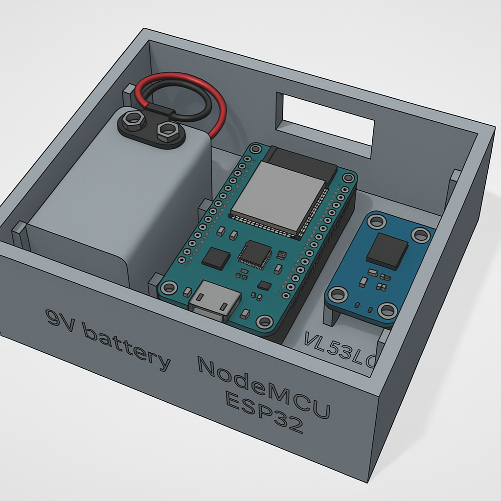- (Eventueel een uitsparing voor een USB-poort om de ESP32 te programmeren zonder de kast open te maken)